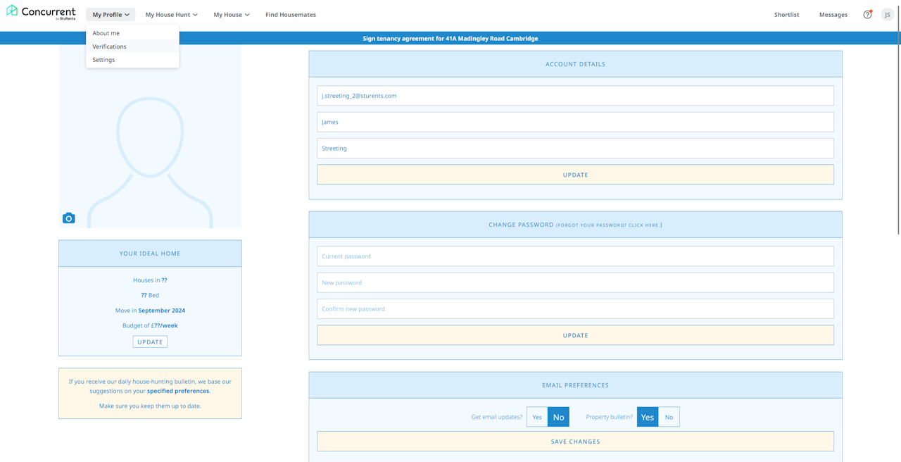 If you're a student or guarantor user, you can now verify your UK mobile phone number and use it to recover your StuRents account.