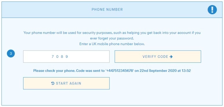 Enter the 4-digit code from the SMS into the box and click Verify code.