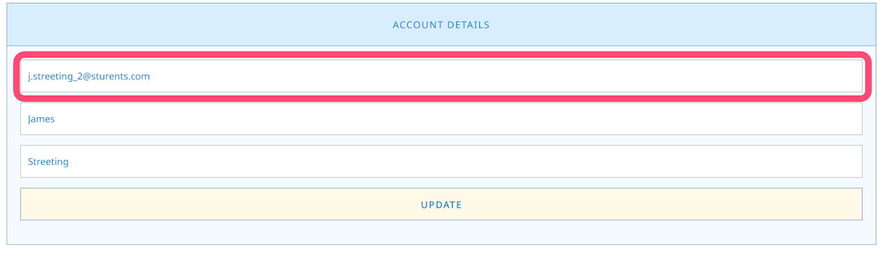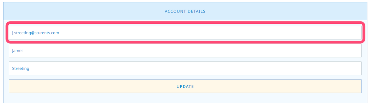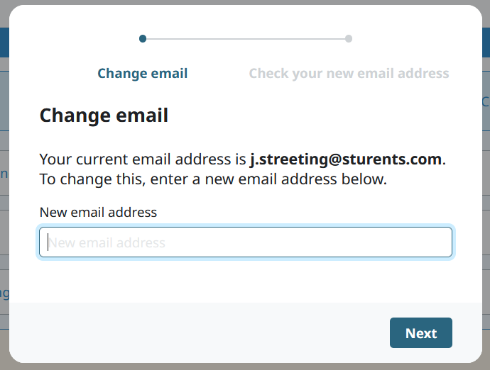 Click the email address field in the Account Details section and enter your new email address in the pop-up window.
