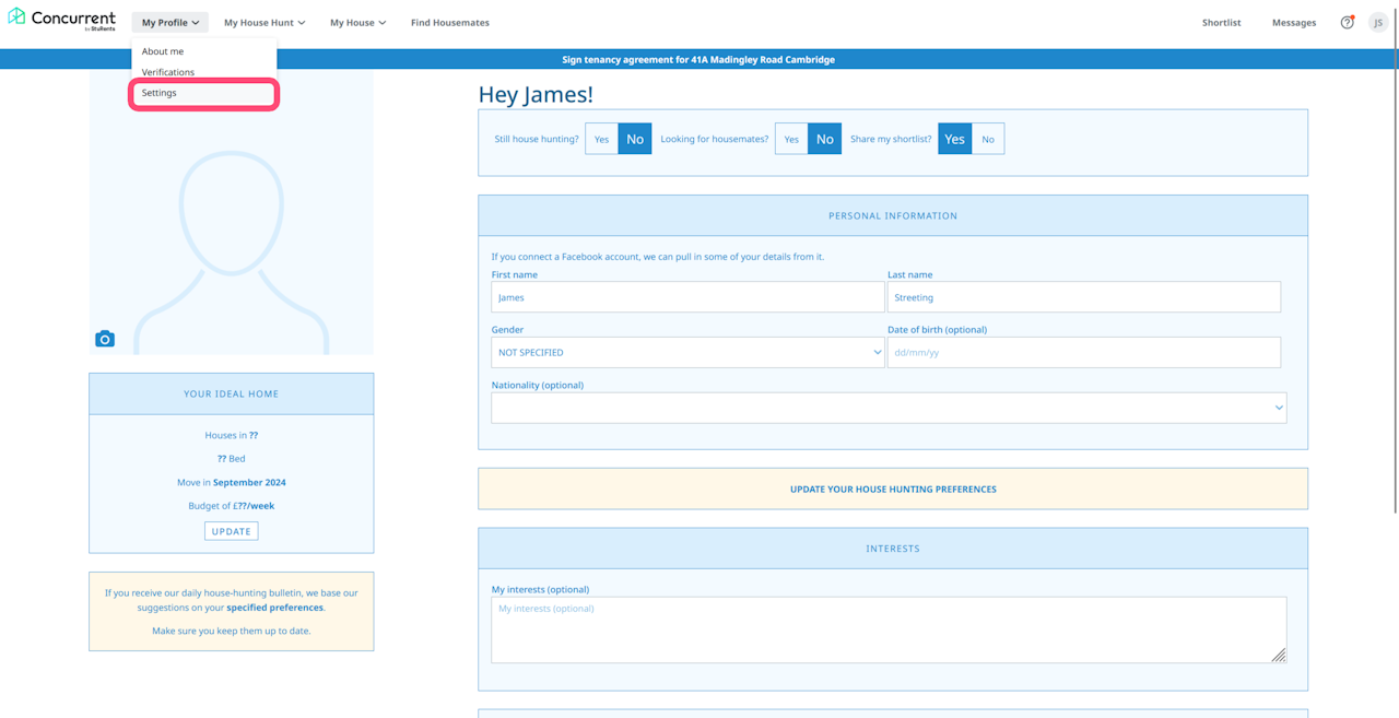 If you are a tenant or guarantor user, you can change the email address associated with your account. This is the email address that you would use to log in to concurrent.co.uk.