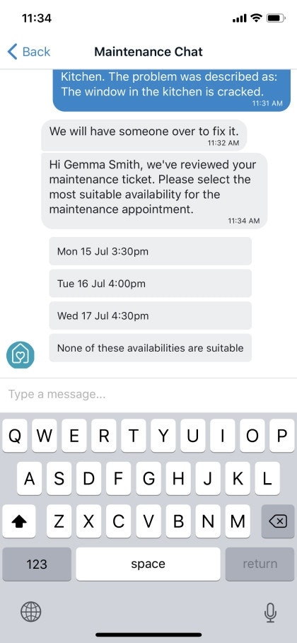 You can select the best option for the maintenance appointment from the chat if they are offered by your property manager